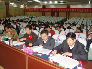 大会号召:全院教职员工团结起来,在院党委的领导下,高举邓小平理论伟大旗帜,以“三个代表”重要思想和科学发展观为指导,全心全意依靠教职工依法民主办学,抓住机遇,振奋精神,同心同德,开拓创新,为早日进入国家示范性高职学院,构建和谐校园而努力奋斗!